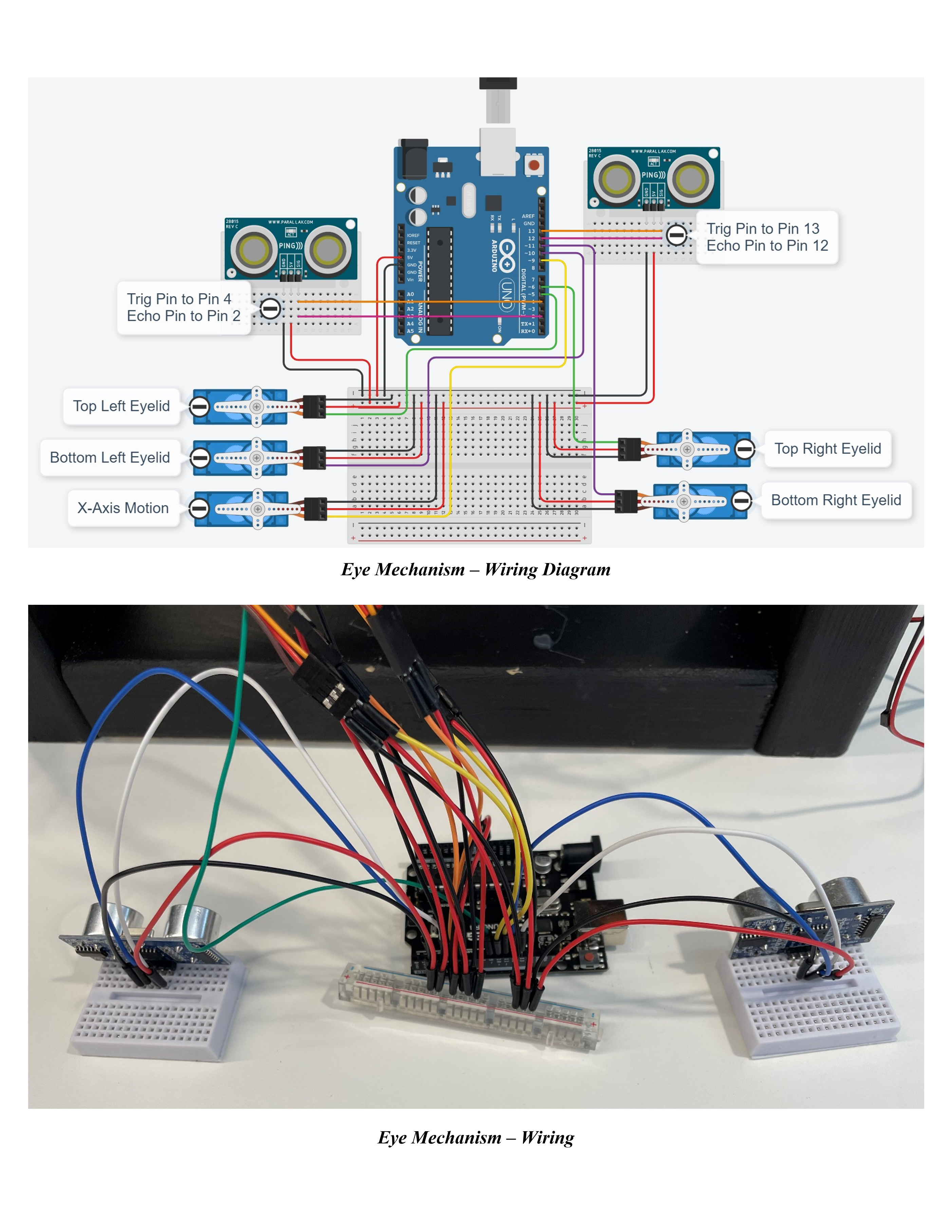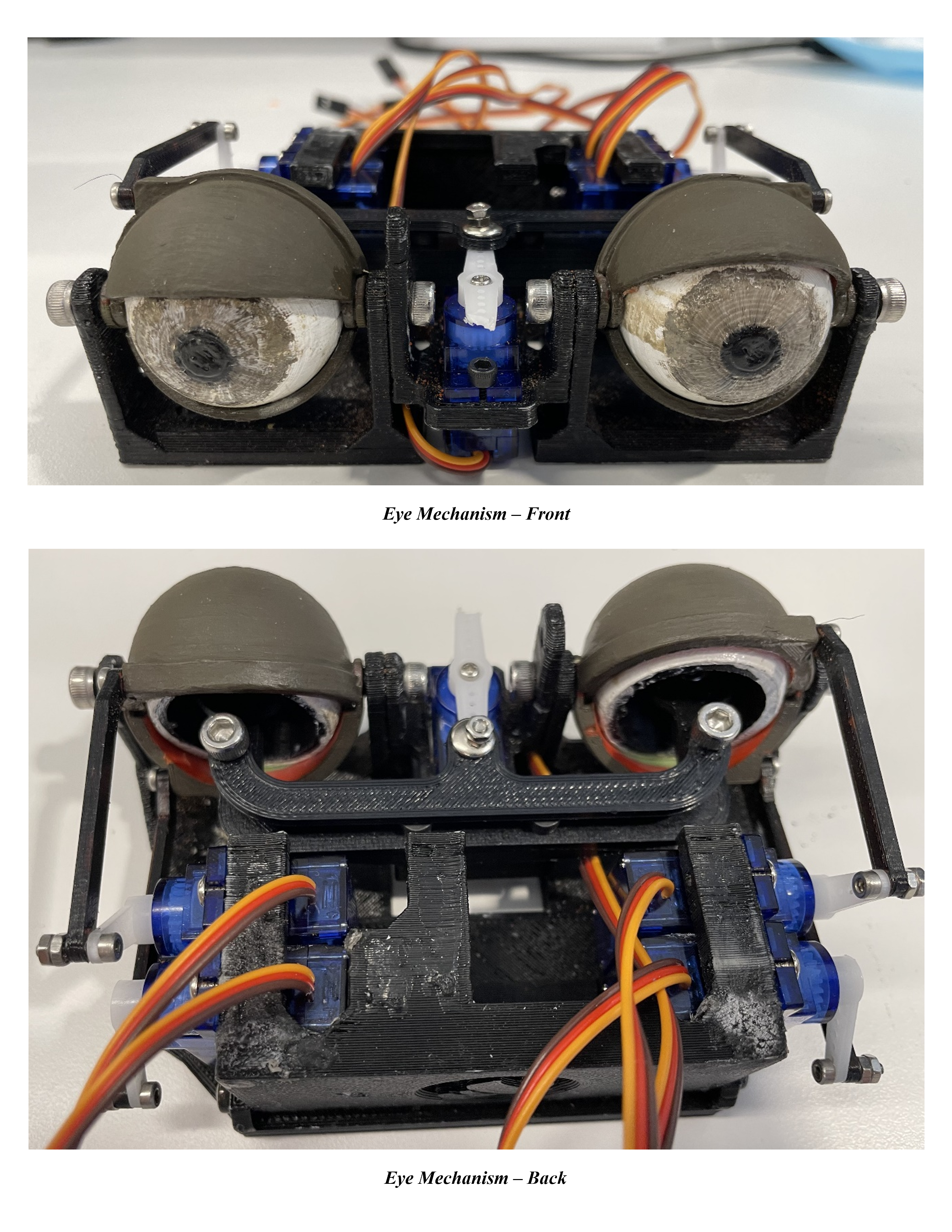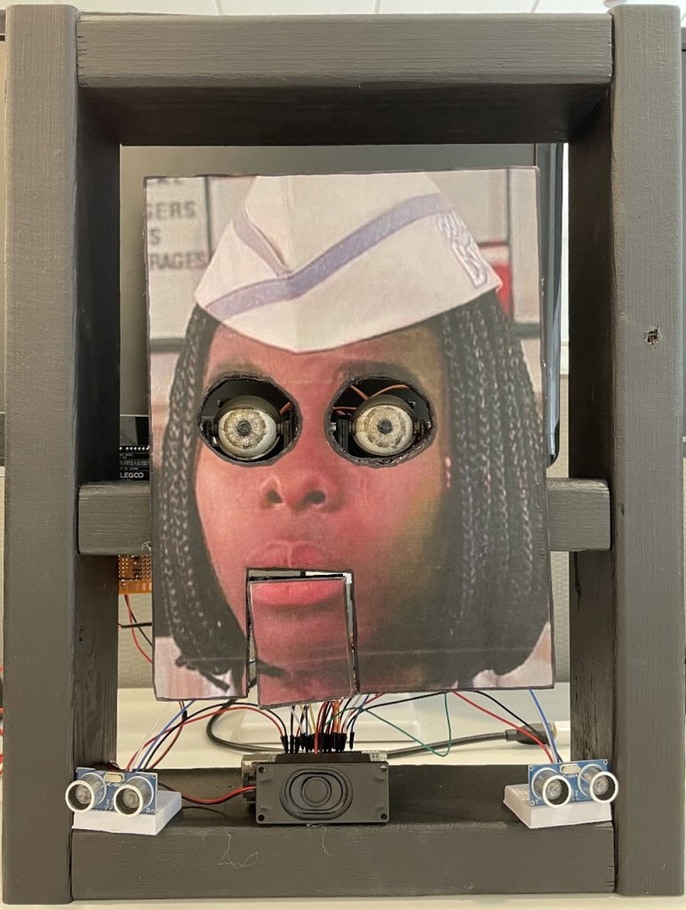 This project is inspired from Disney’s Hall of Presidents attraction. The animatronic face built during this project is based on one of the main characters, Ed, from the movie Good Burger (1997). The animatronic face is powered by the Arduino platform and has two forms of interaction: object tracking and mouth syncing with conversational integration. The face uses a dual ultrasonic sensor setup to track objects in front of it and move the eyes accordingly to maintain eye contact. The face also utilizes a microphone as a threshold sensor to listen for a person’s interaction; once the threshold is reached the animatronic plays a sound and the mouth moves with a rudimentary mouth sync. This was a partner project and my role in the project was developing the mechanism, electronic wiring and code for the eyes and eye tracking system. The animatronic face was showcased at a project demonstration within the Department of Mechanical and Industrial Engineering at the University of Illinois Chicago. Along with the final working prototype of the animatronic face, the final deliverable included an instructable that can be found here, detailing a step-by-step explanation of the animatronic face construction.