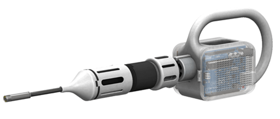 At the time, Neurovision had already produced a piece of equipment that used electrical impulses to determine the location of nerves. This piece of equipment is called the Nerveana Nerve Locator, which uses a nerve stimulator and EMG monitor to continuously stimulate soft tissues. The EMG monitor constantly detects, interprets, and records muscular responses. When an EMG signal of an evoked nerve is found, an alarm sounds to the surgeon providing them with the information that a nerve is nearby. This allows the surgeon to have a better idea of where peripheral nervous tissue is located, which ultimately allows for greater safety of the patient. The only drawback with this type of technology, however, is it lacks real-time imaging capability. My team was tasked with developing a handheld, OR-ready device for real-time, label-free detection of nervous tissue without patient-device contact and that used simple components capable of sterilization. Additionally, our design needed to abide by the following criteria: 1) have a user-centered design focused on being handheld and easy to use, 2) use polarized LED light for nerve detection, 3) contain electronic components to control the device, 4) capable of being coupled with fiber optics for use in endoscopic procedures.