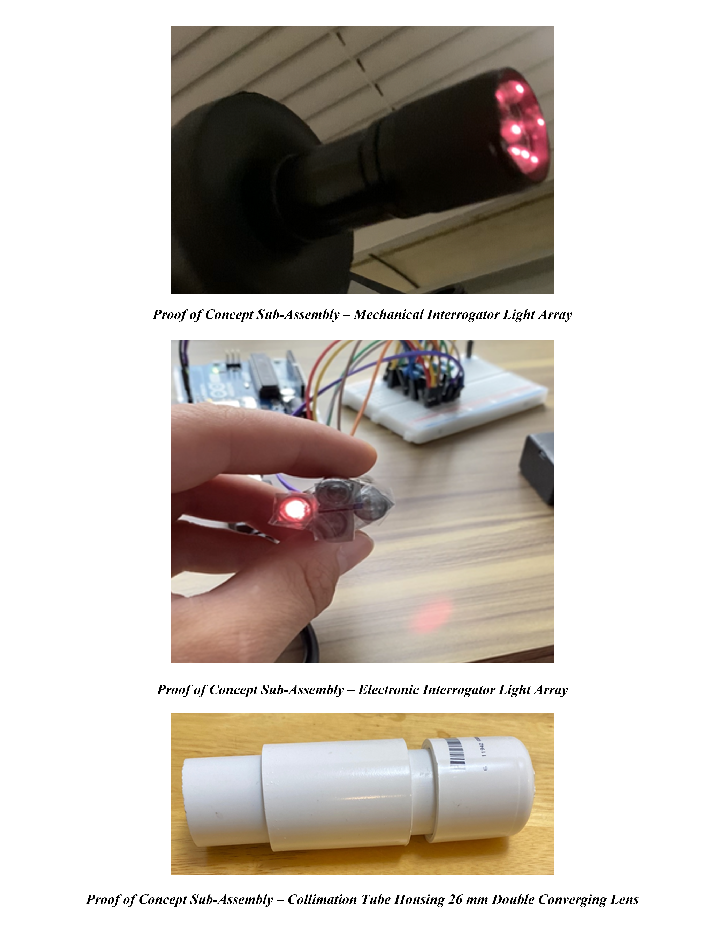 Based on Neurovision’s needs, my team designed two collimated, polarized LED light interrogator systems for Neurovision, to be a part of their future nerve detection systems. Our light interrogator system came in two designs: mechanical and electronic interrogators. While each system consisted of different components and had different operating principles, they both utilized a collimated, polarized LED light array to exploit the nervous tissue’s anisotropic properties with light for nerve detection. Both interrogator designs used 780 nm Near-Infrared (NIR) LEDs for proper skin depth penetration. The light polarization was produced using P200A polarizing film and the collimation was taken out through the usage of a standard 26mm double-convex converging lens. Additionally, they both used an Arduino Uno to control all electronic components and a 9V battery as a power source. Aside from these components, the designs differed greatly in order to accomplish their intended functions